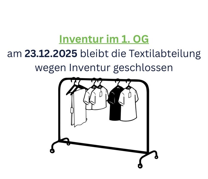 Die Textilabteilung im 1. OG bleibt am 23.12. wegen Inventur geschlossen.